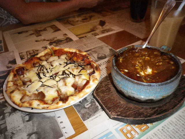 期間限定「ネギ味噌チャーシューピザ」とカレードリア(ドリアも釜でチーズをこんがり焼いてます♪)
