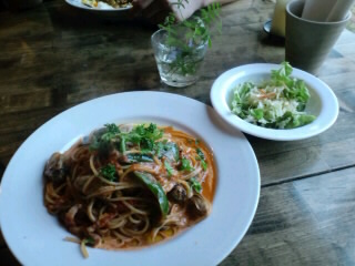 野菜とつくねのカレーと、カキのトマトソースパスタ。